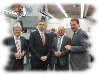 Bild links: Geschäftsführer Norbert Wilhelm, der Vertreter des türk. Firmeninhabers Alp Evrenosoglu, Bürgermeister Görig, Landrat Kübler (v.l.)